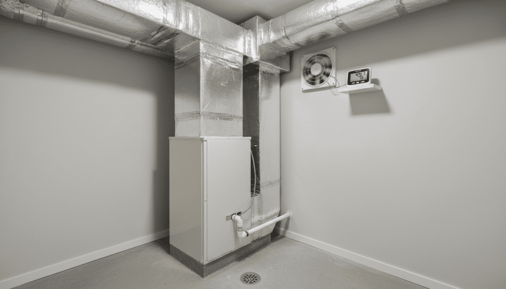 Make sure there is proper ventilation in basements, laundry rooms, and mechanical rooms. Poor ventilation lets humid air sit on metal and trap moisture on surfaces. - Insulate pipes and ductwork